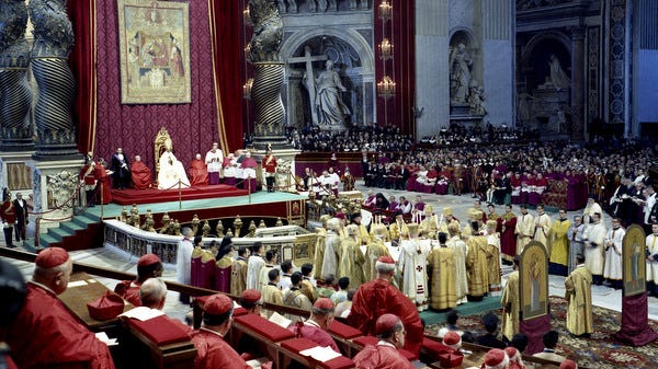 It has been argued that Paul 6’s de-coronation indicated the end only of the temporal power of the papacy. This is an uncertain thesis; firstly, this was not true, there was no change in Paul 6’s temporal authority over Vatican City. And it was only back in 1927 that the Bishop of Rome had regained authority over Vatican City, after the loss of the Papal States in the 19th century. Even if we accept that this was the meaning of his gesture, temporal authority was only represented by one of the rings on the Triregnum, the lowest tier. It should be assumed that the papacy retained the spiritual headship, and the ecclesial headship, and the post conciliar popes have all claimed this authority, but to diminishing degrees. The Synod on Synodality being a mongrel breed both of the unquestioned authority of the pope mixed with the implementation of a major reassignment and reduction of papal authority. The Synod places infallibility on the sensus fidei of all the ‘People of God’. And paragraph 22 of the final document of the Synod makes the following claim that would have been outrageous to make less than a century ago;